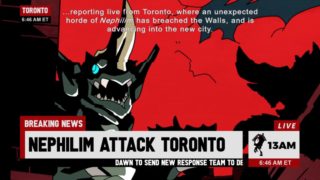Here, players can purchase health, rage, and cataclysm upgrades, as well as alternate skins for each champion. These skins are more than just random color swaps. Each one pays homage to legendary tokusatsu, anime, and other famous media. In addition to slaying beasts and customizing the heroes, players also can access the in-game archive. The archive serves as a library where players can access documents that dive deeper into the game’s vast universe including detailed information about the Nephilim, character profiles, and other files from DAWN’s database.