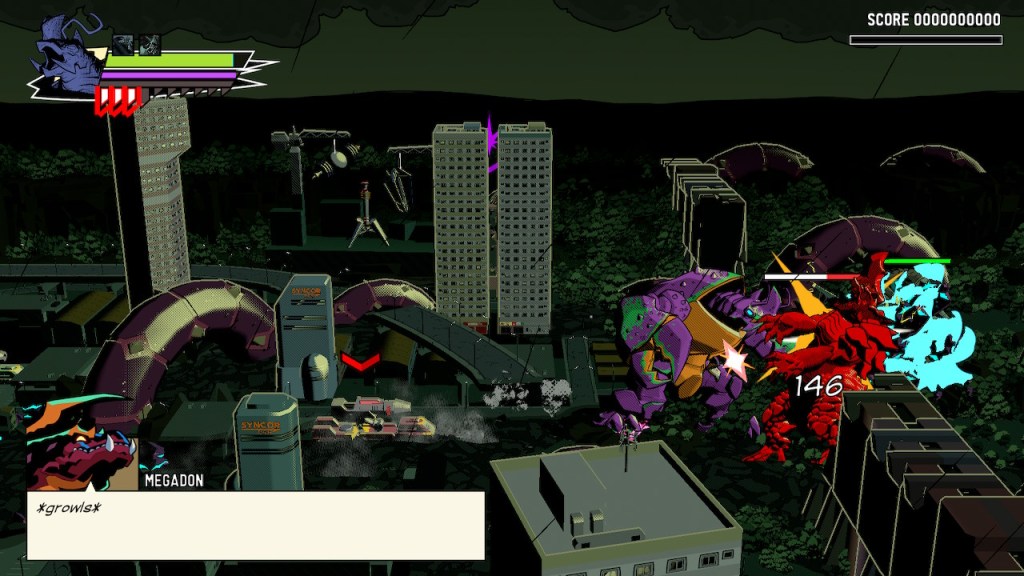 The combo system overall has a ton of depth to the point where Dawn of the Monsters feels more akin to a fighter at times. Not only do holds lengthen combos, but so does movement. Tapping the dash button causes each character to dash forward, which not only serves as an evasive maneuver but can also be canceled out of certain attacks. Canceling allows you to perform combos that normally would be impossible.